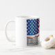 Construção do Capitólio dos E.U. do Washington DC com a caneca da ilustração do fundo da bandeira americana dos E.U.