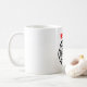 Uma caneca de café astuciosa para tudo você bombeiros que amam o café, com as palavras "bombeiro" escrito no vermelho.