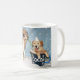Esta caneca caracteriza um golden retriever que bebe uma caneca de cacau quente, com o cacau que é um filhote de cachorro do golden retriever.