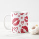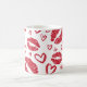 Uma caneca de amor coberta de corações pode ser dada como um presente de Dia de os namorados.