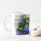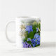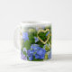 Lindas drangeas azuis com pequenos corações ouros, belos presentes de casamento e aniversário.