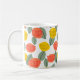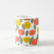 Esta caneca tem um design de flor escandinavo e folhas espalhadas em coral, ouro e verde-sábio.