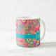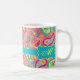 Você vai gostar desta caneca colorida com um design paisley colorido e personalizado com suas iniciais ou nome de monograma. As cores ousadas desta design paisley trendy apresentam um fundo cor de laranja coral com uma tira azul-azul-turquesa e emblema para personalização. Os paisagistas brilhantes, frescos e modernos fazem um belo design artístico que inclui palavras inspiradoras de Amor, Esperança, Fé, Inspira, Cherish, Be Happy, Dream e Live no fundo entre os paisleys. Essa coleção do Mod Paisley, projetada por Phyllis Dobbs, usa as cores do chalé, da turquesa, do verde limão, do vinho, do amarelo, da fúsia e da laranja para criar uma diversão e levar a sério o motif tradicional e popular de paisley. O motif paisley é eterno em atração, mas essa arte original é tanto de moda quanto de contemporânea. Totalmente personalizável para personalização com suas próprias palavras para adicionar sua própria mensagem.