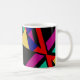 Caneca de café do divertimento, em um teste padrão moderno de cores abstratas corajosas. Máscaras vívidas brilhantes do aqua, do vermelho, do azul, do roxo, do amarelo e do preto. Todos precisa uma obra de arte para seu café da manhã!