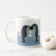 Esta é uma fotografia de dois pinguins de imperador que cortejam-se.