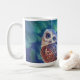 Uma coruja pequena olha a Aurora sob uma Lua cheia.