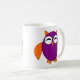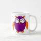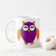 Esta caneca de na moda apresenta uma coruja fofa com os olhos fechados como se estivesse dormindo e garras bonitinhas. Seu corpo é roxo e suas asas, ouvidos e garras e bico são laranja. Esta coruja fofa é tão adorável que os adultos a amarão tanto quanto as crianças.