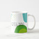 Comece seu dia da melhor maneira com essa caneca fofa com texto motivacional e inspiracional. Design moderno e abstrato em cores verde e azul. Você pode mudar o texto "Pequenas coisas fazem grandes dias" para seu próprio texto, então você terá uma caneca única e personalizada. Bonito presente de aniversário, dia de as mães e qualquer ocasião especial.