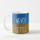 Caneca De Café Cotação Motivacional Azul e Dourada NUNCA DEFINIÇÃ