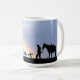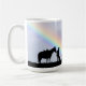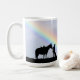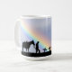 Cowboy em oração com seu cavalo e uma caneca de café arco-íris espantosa