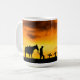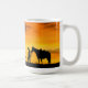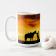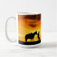 Cowboy em oração com seu cavalo e uma caneca de café solarista espantosa