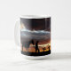 Cowboy em oração com seu cavalo e uma caneca de café solarista espantosa