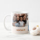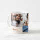 Cor de laranja, pêssego e caneca branca moderna e mínima queimada apresenta duas fotos e nome personalizado em uma simples tipografia.