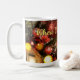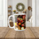 Wrap your hands in holiday warmth with this festive Christmas mug. Featuring classic fir branches, red and gold ornaments, and twinkling string lights on a warm beige background, it brings Christmas magic to your favorite beverages. The phrase "Cozy Christmas Dreams" captures the snug, joyful spirit of the season with every sip of cocoa or coffee.