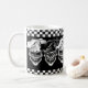 Beba seu veneno da manhã nesta caneca de café do cozinheiro chefe de riso legal e engraçado do crânio. Este trio dos crânios pouco sentimentais, contudo felizes do cozinheiro chefe, estala realmente para fora contra o fundo preto, com os painéis checkered preto e branco. A ferramenta da personalização permite que você mude a cor a uma de sua escolha, e resize as imagens para caber o texto personalizado. Disponível em estilos diferentes, este estão um divertimento e um presente original para o chefe de cozinha, o cozinheiro chefe sous, o cozinheiro chefe de pastelaria, o cozinheiro da casa, a linha cozinheiro, ou a qualquer um com uma paixão para cozinhar! Visite www.zazzle.com/thechefshoppe para ver mais os crânios temáticos culinários legal.