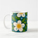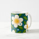 Caneca De Café Creamy White Florals Pattern with Green Leaves