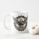 Elevate your morning cuppa with this striking mug that fuses Industrial Eagle symbolism on the front with James Baldwin's timeless words on the back. The front artwork showcases a fierce eagle clutching an American flag shield and open book within interlocking gears and circuit motifs, encircled by the banner "Critical Patriotism" celebrating national pride tempered with critical thinking and research.