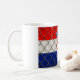 This bold Croatia flag mug shows the red, white and blue stripes and the official Croatian coat of arms seen through a realistic steel chain-link fence, symbolizing security, borders, protection and independence. A powerful design for showing Croatian pride, national identity and strength in a modern, eye-catching graphic style.
