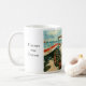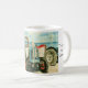 Uma caneca de café branca com uma imagem de tratores na praia em East Runton, Nr Cromer, Norfolk, Reino Unido; de uma pintura pastel macia de Judy Adamson. Cartões de saudação, impressões e posters também disponíveis