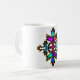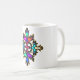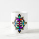 Uma caneca de cerâmica vibrante com um design colorido de cruz tribal. Este padrão artístico único traz uma energia ousada e moderna para a sua cozinha ou escritório."