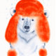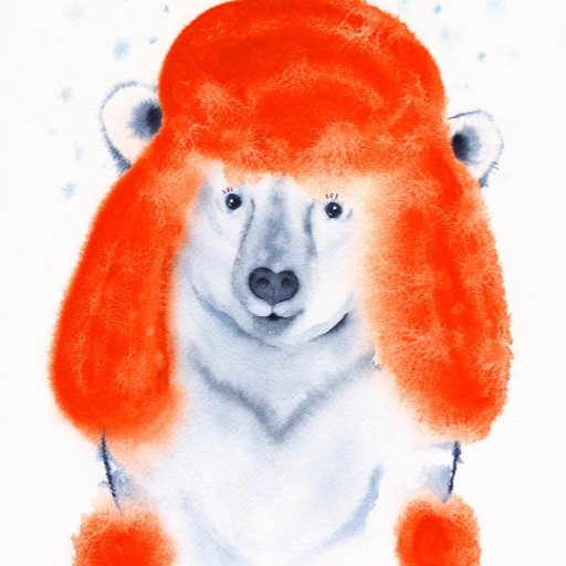 Cubo de Urso Polar Cubo em vermelho de inverno, aquarela da artista Zaira Dzhaubaeva.