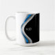 Um elegante olhar moderno para casa ou escritório, esta design de caneca esportiva de café tem curvas metálicas em azul, prata e cinzas em um padrão curvo com fundo preto e branco. Personalize com seu monograma. Você também pode excluir o monograma de amostra mostrado no modelo de texto se desejar solicitar o item sem texto. Esta caneca faz uma maravilhosa ideia de presente para um colega de trabalho, seu chefe, ou um amigo ou membro da família iniciando um novo emprego. Também é um bom presente para si mesmo!
