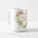 Celebrate love and appreciation with this customizable floral heart mug, featuring a loose heart-shaped wreath of spring flowers painted in a soft watercolor brushstroke style. Tulips, daisies, and flowing leaves form an organic floral heart, creating a gentle and uplifting design perfect for Mother’s Day.