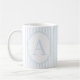 This elegant monogram mug features a soft blue and white striped design with the letter A in the center. Perfect as a personalized gift for coffee lovers, coworkers, friends, or family. Whether for the office or home, this stylish cup adds a custom touch to any daily routine.