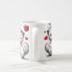 Imagine a white, delicate mug with a smooth and glossy surface. Around it, there's a charming design of cute kittens, all with adorable expressions, big, bright eyes. Some kittens are playfully chasing colorful yarn balls, while others are lying down, striking a "cute" pose with their little paws. The cats are drawn in soft shades of gray, white, and beige, with small pink details on their ears and noses, creating a subtle and endearing contrast. The background of the mug features tiny cat paw prints and hearts scattered around. This mug evokes a cozy, affectionate feeling, perfect for anyone who loves cats and wants a cute, warm touch for their coffee or tea moments.
