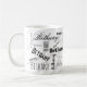 A crafted typography mug showcases "Bethany" in various type styles over a background script. The black, white, and grey colors offer a timeless look, ensuring your coffee remains yours with the prominently displayed name.
