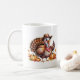 Grab this cute mug and add some humor to your fall mornings with this adorable mug featuring a playful turkey trying to gobble up pumpkins. The charming autumn design captures the fun spirit of Thanksgiving and cozy seasonal vibes. Perfect for sipping coffee, tea, or hot cocoa while enjoying the holiday festivities. This mug also makes a delightful and funny gift for friends, family, or any Thanksgiving host.