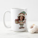 Perfect for the silly season, this personalized mug features a festive illustration of a cute Christmas elf holding a candy cane and a gift. The best part? You can upload any face—your child, friend, family member, or even a pet—to complete the elf's look, making it a truly unique and hilarious holiday accessory.