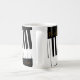 Artistic design featuring diagonal black-and-white piano keys and the quote “No coffee, no concerto” — customizable with your name.
