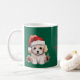 Cute Bichon Frise at Christmas with a Santa hat and gifts