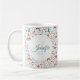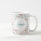 Uma caneca com um adorável padrão de Natal. Veado de inverno bonito com galhadas rondando uma floresta de árvores e gramíneas. Um círculo branco colocado sobre o topo com seu nome e dentro inicial monograma.