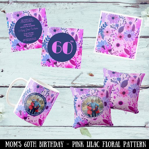 Mom's 60th Birthday - Pink Lilac Floral PatternCriado por Sue McGuinness