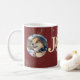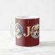 Celebrate the season with an abundance of personalized joy! This delightful mug features a rich burgundy red background and the festive word "JOY" in bold gold lettering.