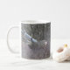 Mule Deer Buck legendou Mug. Esse grande buck de veados de mula estava à procura de faíscas no pincel ao longo de um fundo de riacho.