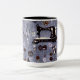 Caneca de café que caracteriza máquinas de costura do vintage & que sewing fontes.