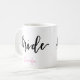 Caneca de café da noiva com rotulação preta e cor-de-rosa da caligrafia. Personalize o nome para personalizar. Rotulação moderna projetada pela alegria por Jess.