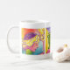Caráteres favoritos da terra da onça! Pintado das ilustrações originais da onça de John R. Neill. Esta caneca caracteriza policromo, a filha do arco-íris, e Tik-Tok o homem da máquina, flanqueando o emblema real da onça.