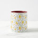 As maçãs estilizados e as sementes dispersaram em uma caneca de café acentuada com punho e interior vermelhos.
