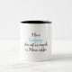 Uma caneca de café que caracteriza o slogan "eu amo Boolprop quase tanto quanto eu amo o café"