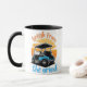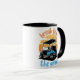 Uma caneca de café com um carrinho de golfe, com a frase "Pausa da Rotina" centrada em torno da imagem. O design sugere uma fuga relaxante e tranquila dos estresses diários.