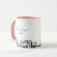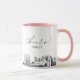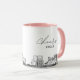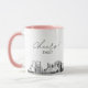 Caneca de café com pontos turísticos de Myrtle Beach. O design apresenta um esboço deslumbrante com a capacidade de personalizar com seu nome ou os nomes das damas de honra, convidados ou outros. Atualize facilmente o tamanho e a cor da caneca ao seu gosto.