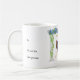 Celebre o amor com esta linda caneca de café de casamento, com uma ilustração encantadora de uma noiva e noiva rodeada por colunas gregas, videiras florais, músicos que brincam harpa, e uma bicicleta com um cheio de flores. Perfeito para comemorar o dia especial, a caneca inclui espaços personalizáveis em ambos os lados da imagem para adicionar nomes, datas ou uma mensagem sincera. A ilustração em si também pode ser personalizada ou substituída, fazer isto como uma manutenção verdadeiramente única para casais ou um presente pensativo para os convidados.