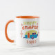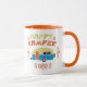 Pise fora de seu campista e derrame um copo fresco em sua caneca nova do campista feliz. Impresso em ambos os lados. Mude a cor interna ao seu gosto.