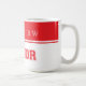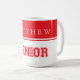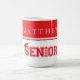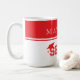 Caneca de café de cerâmica de gradução é mostrada em um design de cores vermelha e branca.