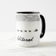 Pague o tributo ao Iditarod, a grande raça do trenó do cão de Alaska onde os mushers sós conduzem suas equipes do cão transversalmente sobre mil milhas de região selvagem do Alasca. Esta caneca tem a palavra Iditarod abaixo de uma única equipe do trenó do cão com um contexto da montanha.