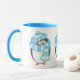 Um pinguim quente e aconchegante decora esta caneca de café. O design é de uma ilustração original.